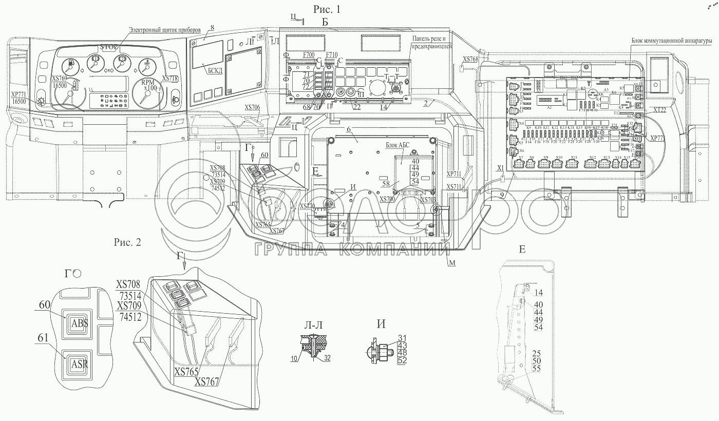 Каталог запасных частей к технике: МАЗ-6501B9. Установка электрооборудования АБС по кабине