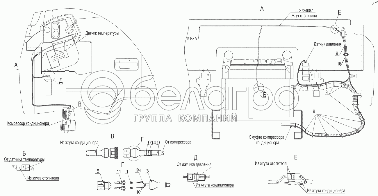 Каталог запасных частей к технике: МАЗ-6501B9. Установка электрооборудования кондиционера 5440A9-3700092