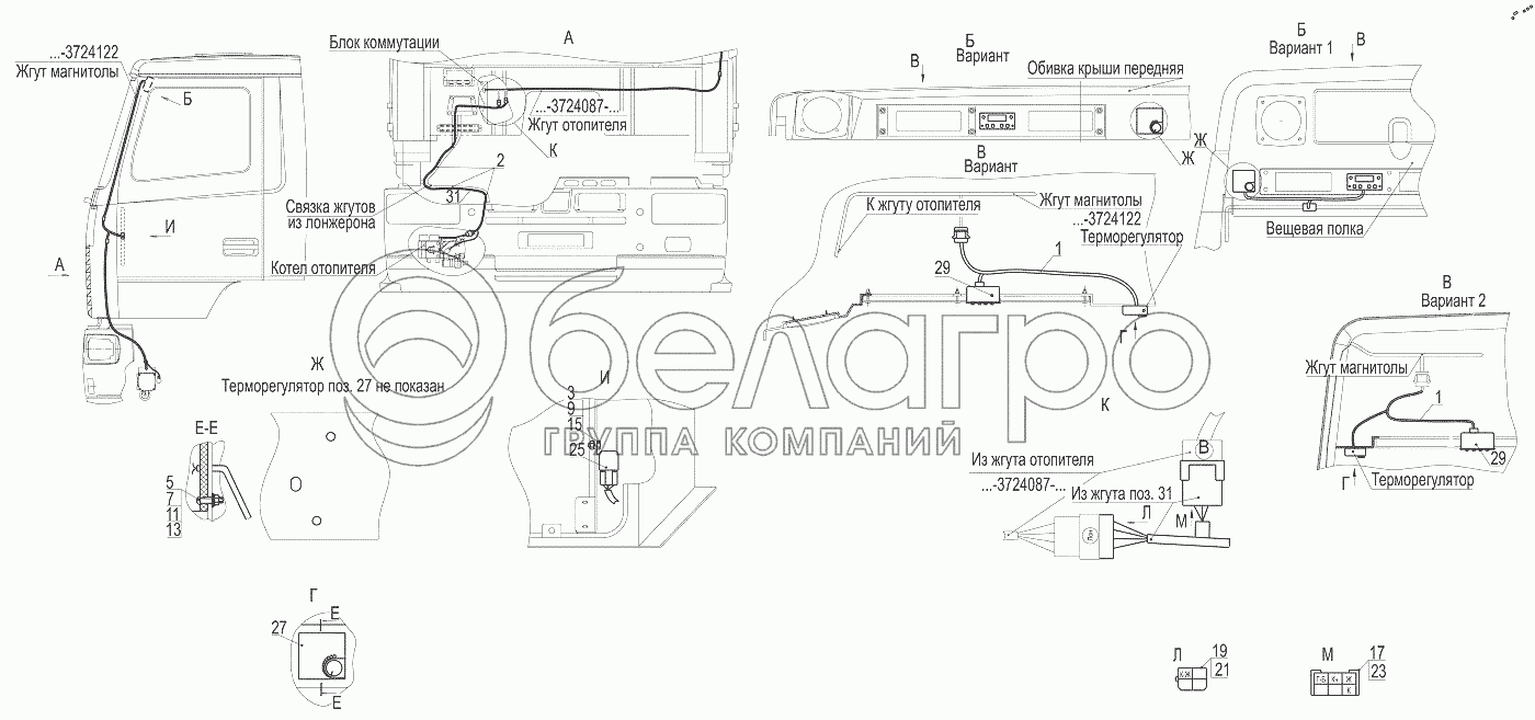 Каталог запасных частей к технике: МАЗ-6501B9. Установка электрооборудования подогревателя 6501-3700085