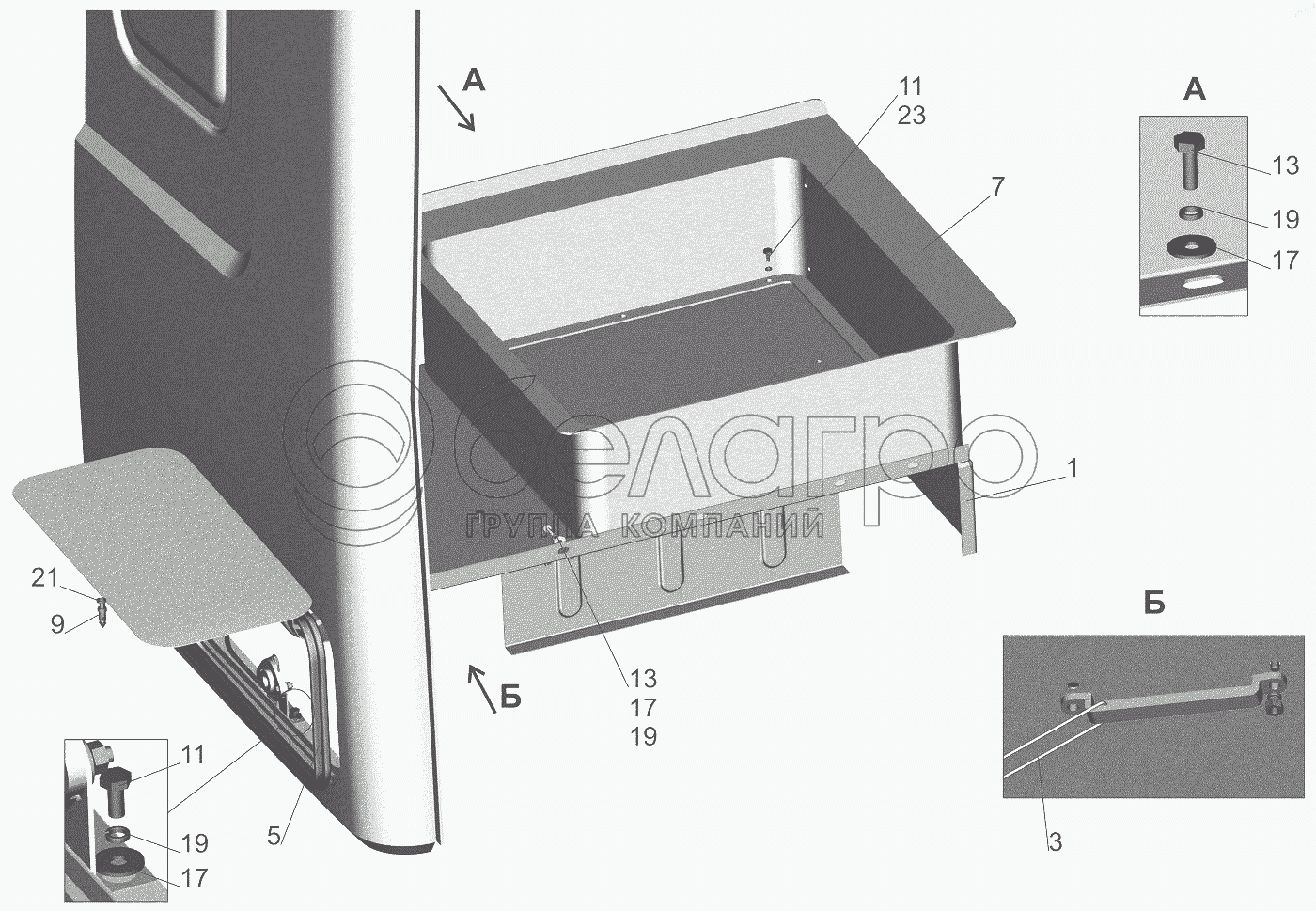 Каталог запасных частей к технике: МАЗ-6501B9. Установка инструментального ящика 6430-5000115-020