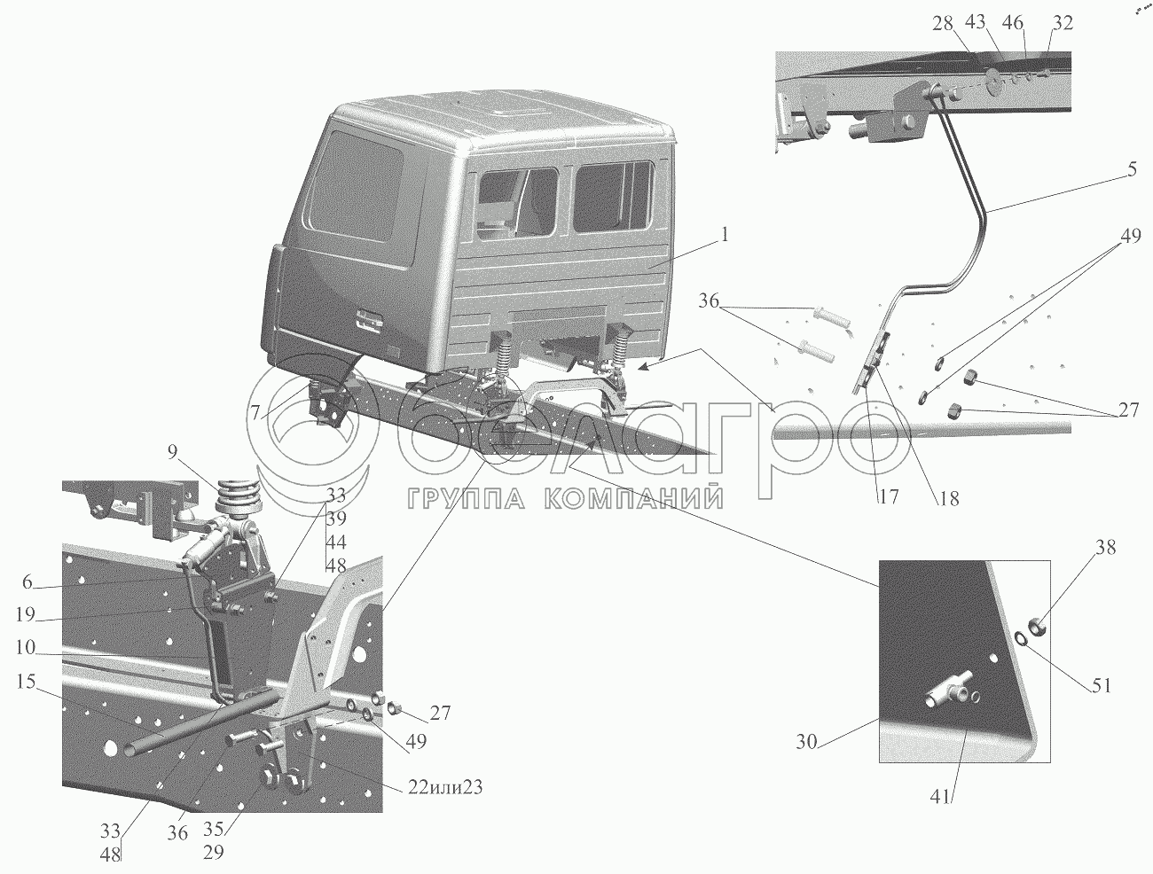 Каталог запасных частей к технике: МАЗ-6501B9. Установка кабины 6501-5000002-080