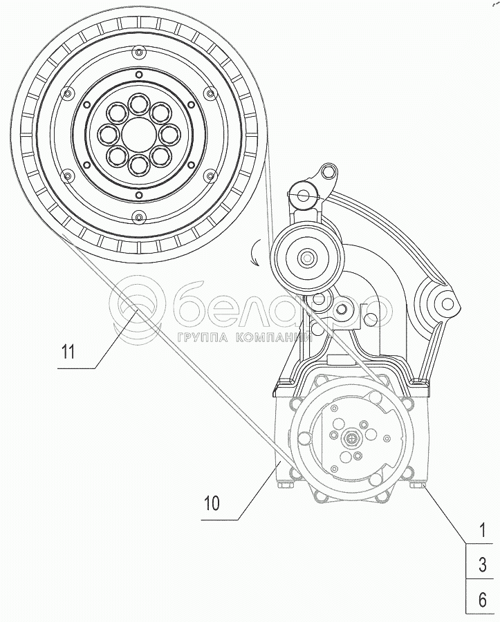 Каталог запасных частей к технике: МАЗ-6501B9. Установка компрессора 5440А9-8100010