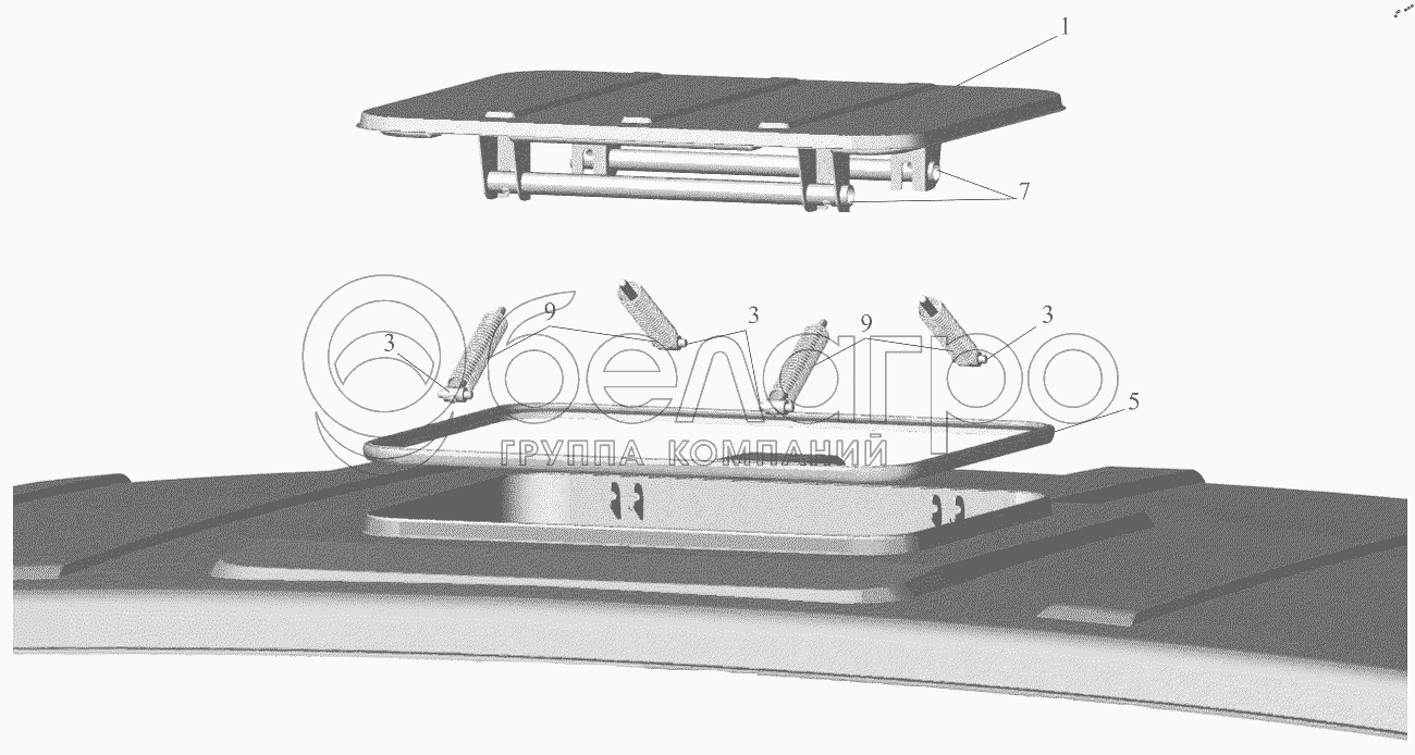 Каталог запасных частей к технике: МАЗ-6501B9. Установка люка 6501-5700010