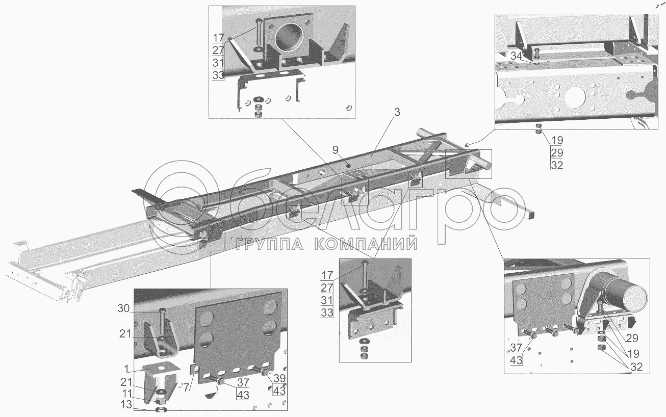 Каталог запасных частей к технике: МАЗ-6501B9. Установка надрамника 6501B9-8600002-020