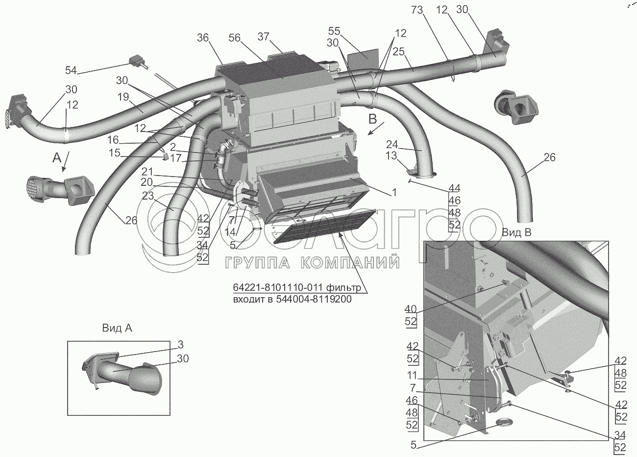 Каталог запасных частей к технике: МАЗ-6501B9. Установка отопителя 631019-8100001