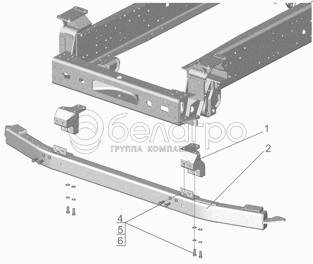 Каталог запасных частей к технике: МАЗ-6501B9. Установка переднего противоподкатного бруса 6430-2800030