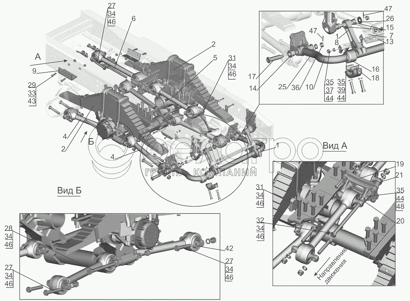 Каталог запасных частей к технике: МАЗ-6501B9. Установка подвески задней 6501A8-2900002