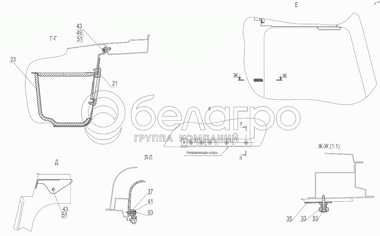 Каталог запасных частей к технике: МАЗ-6501B9. Установка полки, штор 5440-8200034