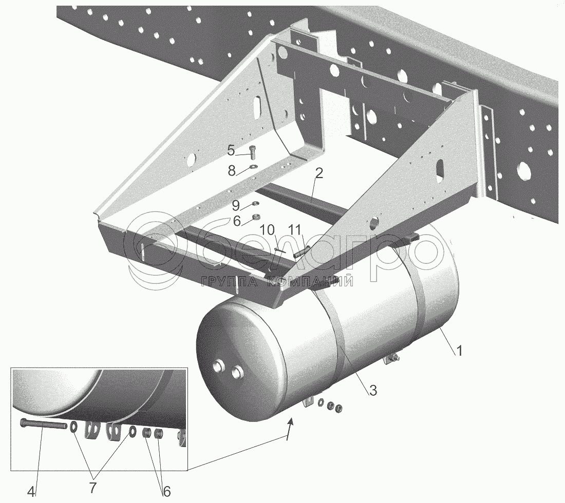 Каталог запасных частей к технике: МАЗ-6501B9. Установка ресивера 5550В2-3513004