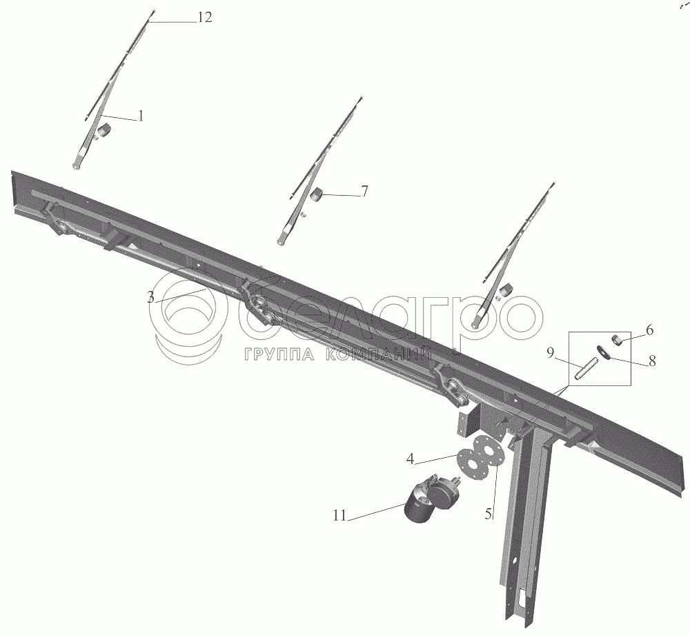 Каталог запасных частей к технике: МАЗ-6501B9. Установка стеклоочистителя 6430-3700041-001