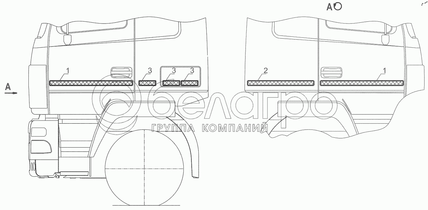 Каталог запасных частей к технике: МАЗ-6501B9. Установка светоотражающей маркировки 6430-8200002