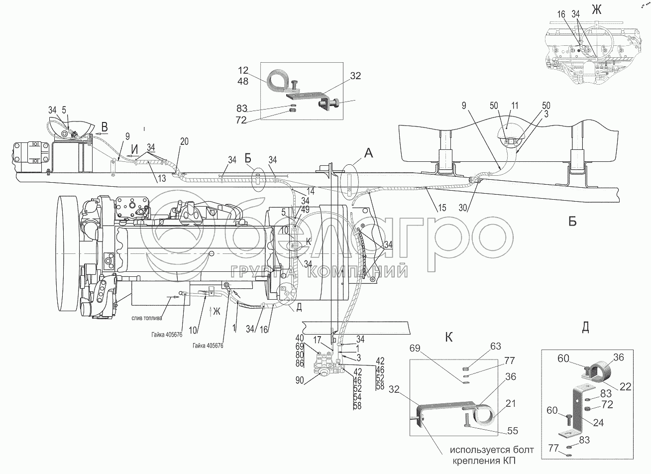 Каталог запасных частей к технике: МАЗ-6501B9. Установка топливопроводов 6501B9-1104002-020