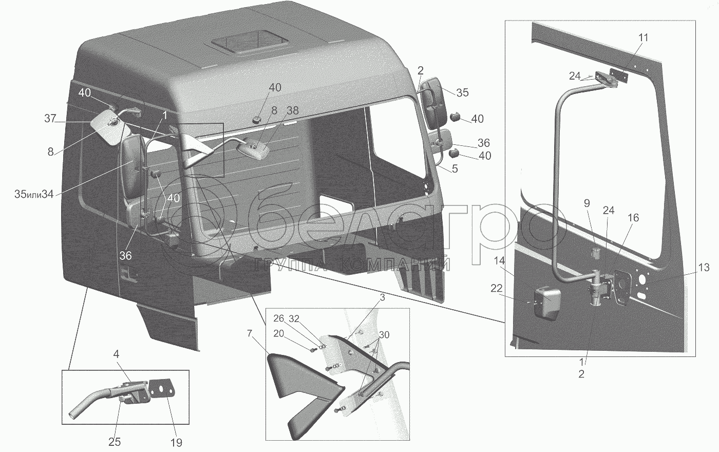 Каталог запасных частей к технике: МАЗ-6501B9. Установка зеркал 6430-8200005, (-021)