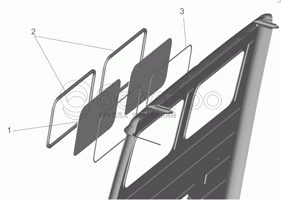 Каталог запасных частей к технике: МАЗ-6501B9. Установки стекла задка 6501-5600015