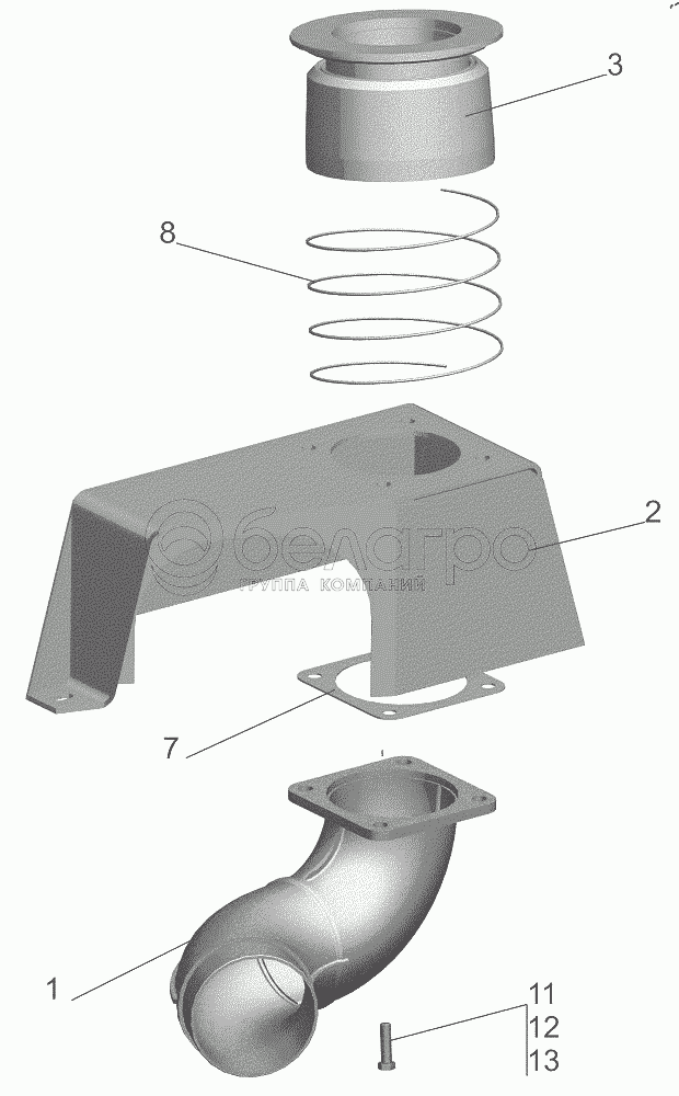 Каталог запасных частей к технике: МАЗ-6501B9. Узел подвода газов 6501В9-1203220-010