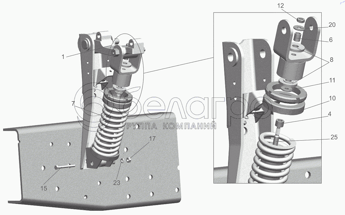 Каталог запасных частей к технике: МАЗ-6501B9. Заднее подрессоривание 6430-5001800-011