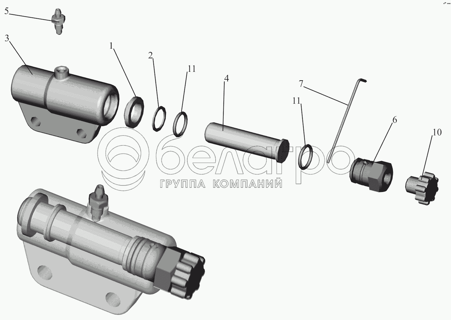 Каталог запасных частей к технике: МАЗ-651669-320 (340). Гидроцилиндр замка кабины 6430-5003100