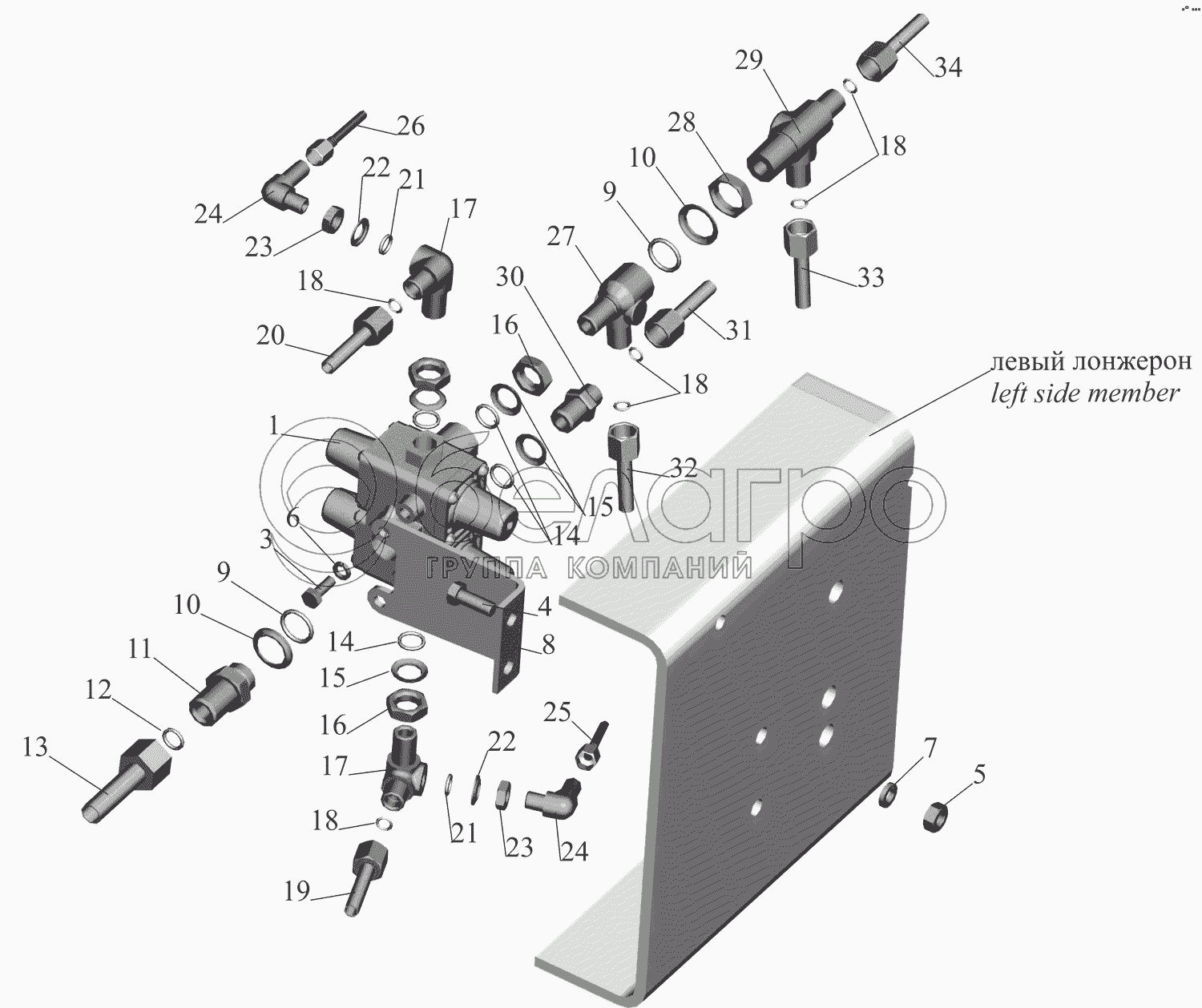 Каталог запасных частей к технике: МАЗ-651669-320 (340). Крепление четырехконтурного клапана 643008-3515002