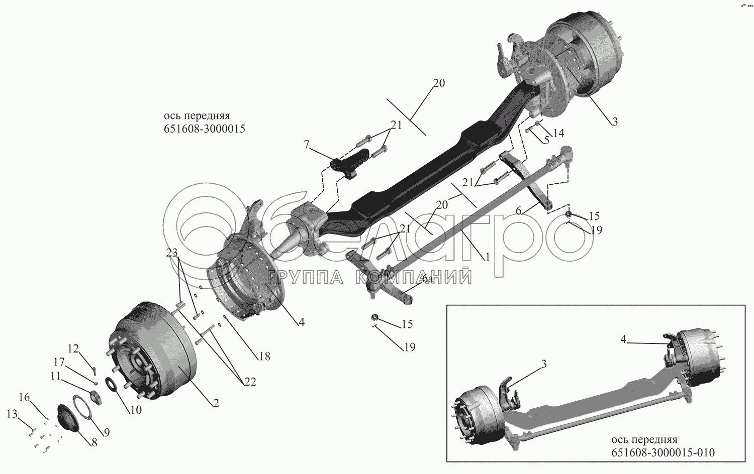Каталог запасных частей к технике: МАЗ-651669-320 (340). Ось передняя