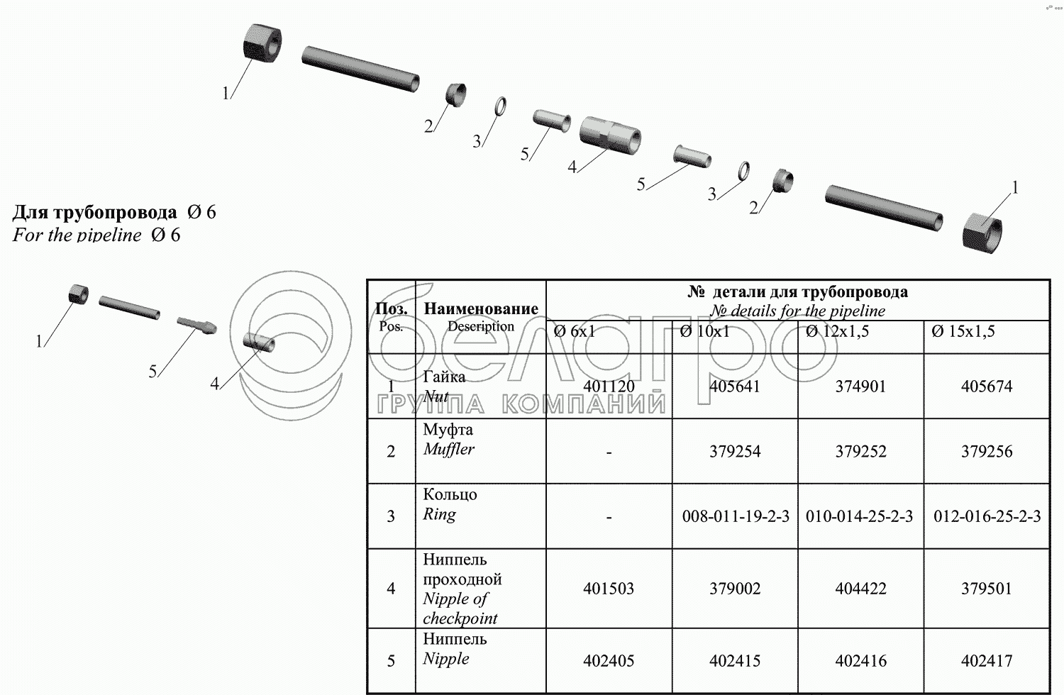 Каталог запасных частей к технике: МАЗ-651669-320 (340). Соединение для ремонта поврежденных трубопроводов