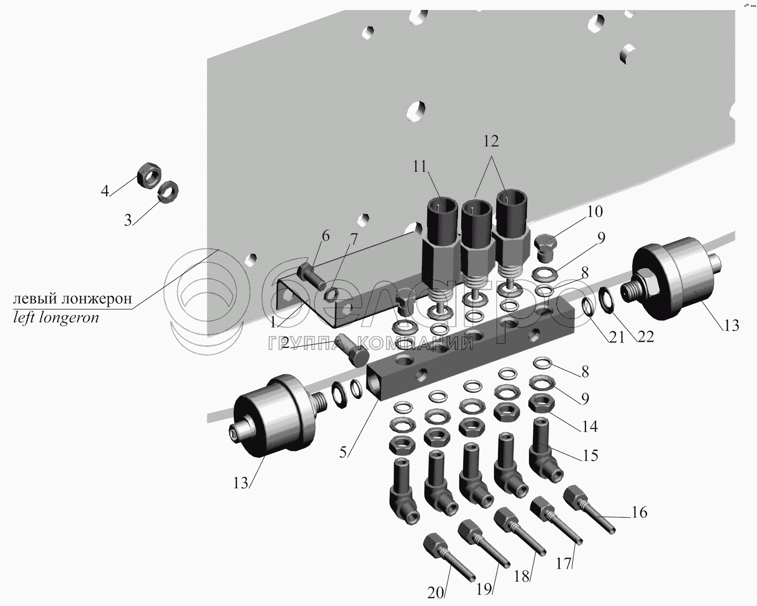 Каталог запасных частей к технике: МАЗ-651669-320 (340). Установка блока датчиков