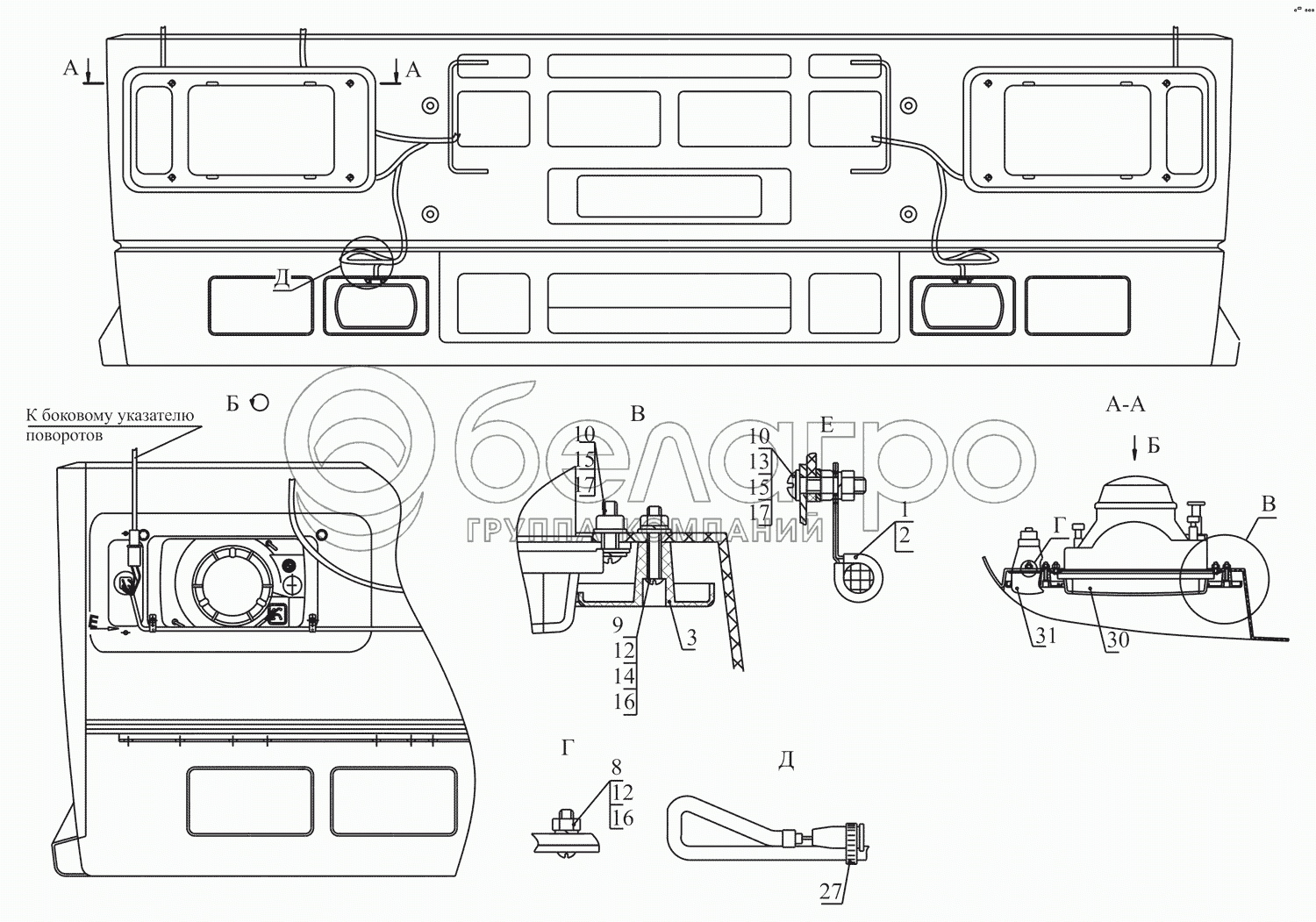 Каталог запасных частей к технике: МАЗ-651669-320 (340). Установка фар 544008-3700006