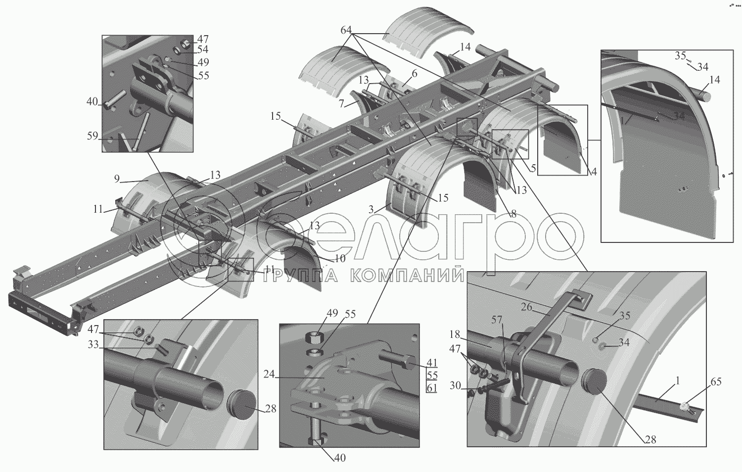 Каталог запасных частей к технике: МАЗ-651669-320 (340). Установка крыльев 651608-8500048