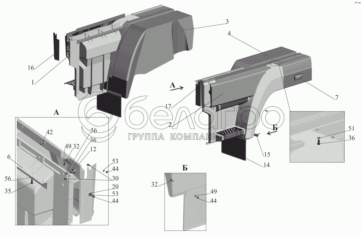 Каталог запасных частей к технике: МАЗ-651669-320 (340). Установка оперения 6516A8-8400020-010