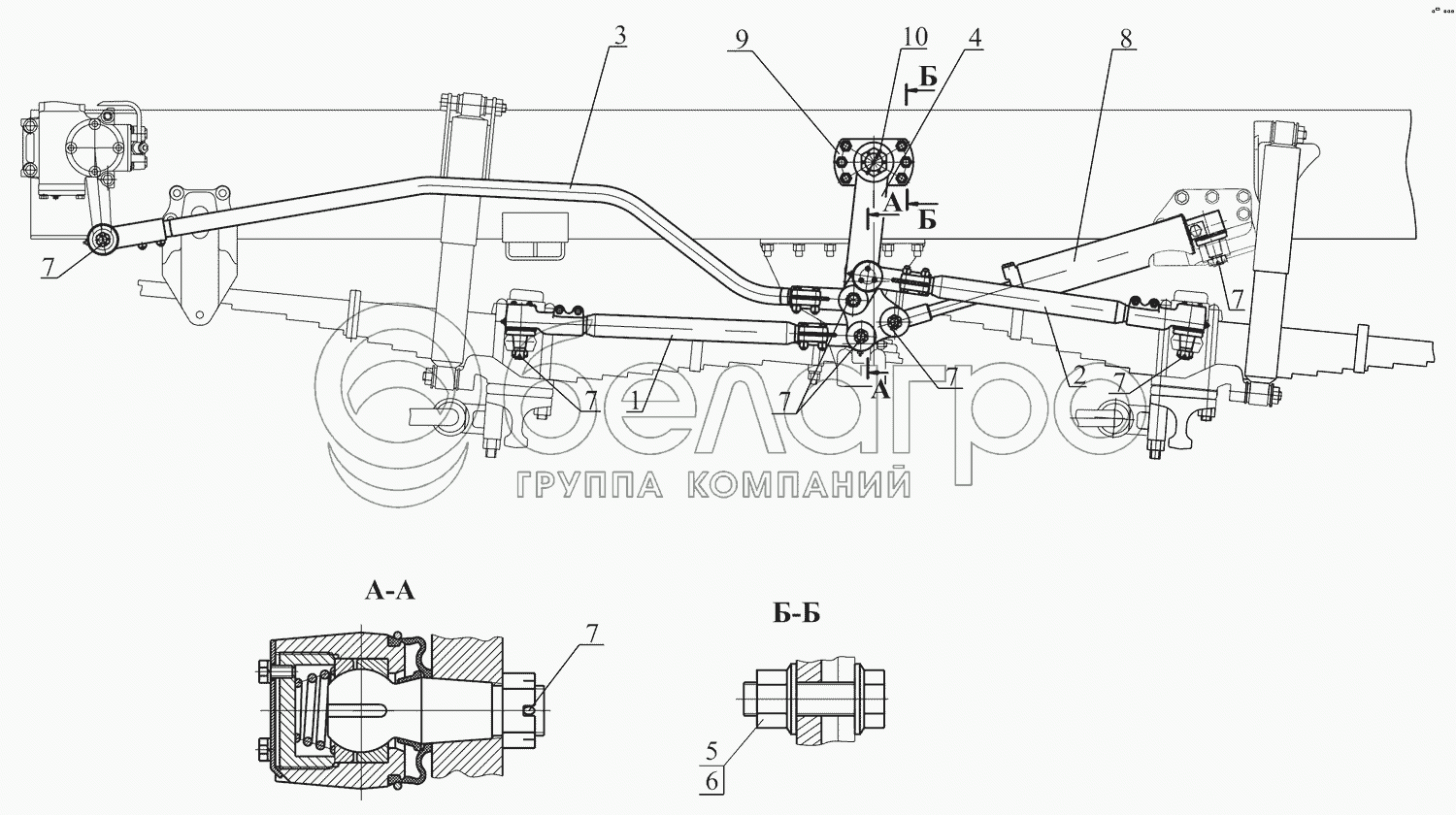 Каталог запасных частей к технике: МАЗ-651669-320 (340). Установка продольных тяг 651608-3000020