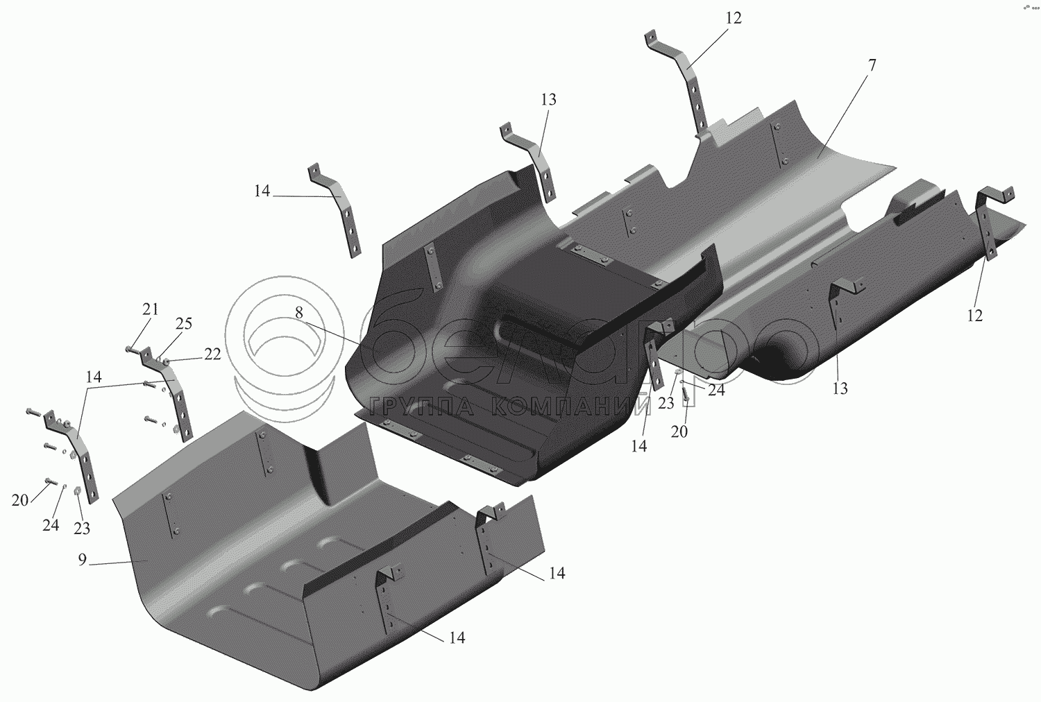 Каталог запасных частей к технике: МАЗ-651669-320 (340). Установка шумоизоляционных экранов 651669-1061004