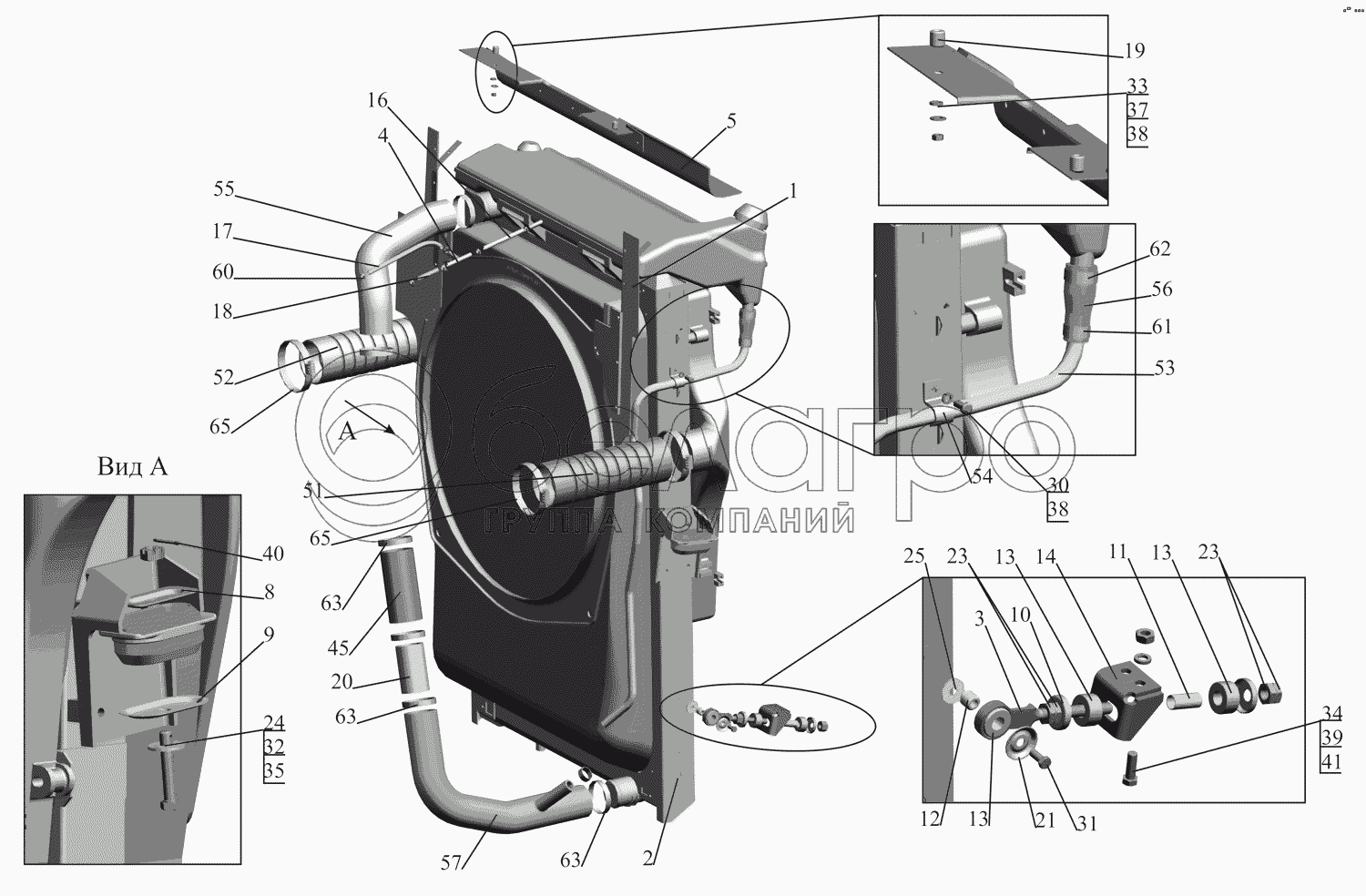 Каталог запасных частей к технике: МАЗ-651669-320 (340). Установка системы охлаждения 651669-1300005