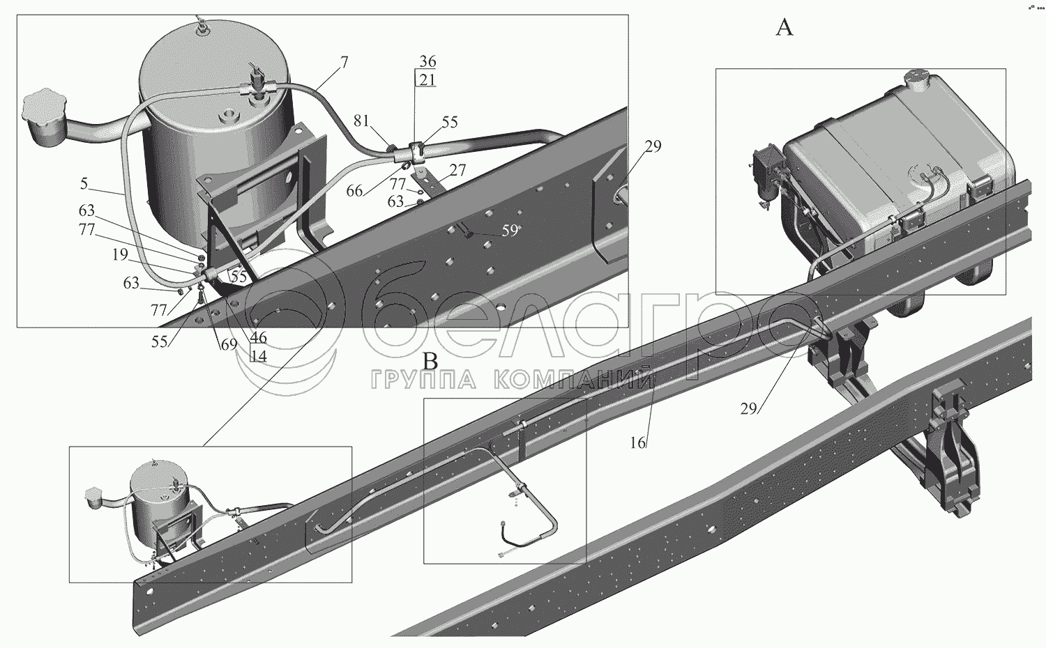 Каталог запасных частей к технике: МАЗ-651669-320 (340). Установка топливопроводов 651669-1104002