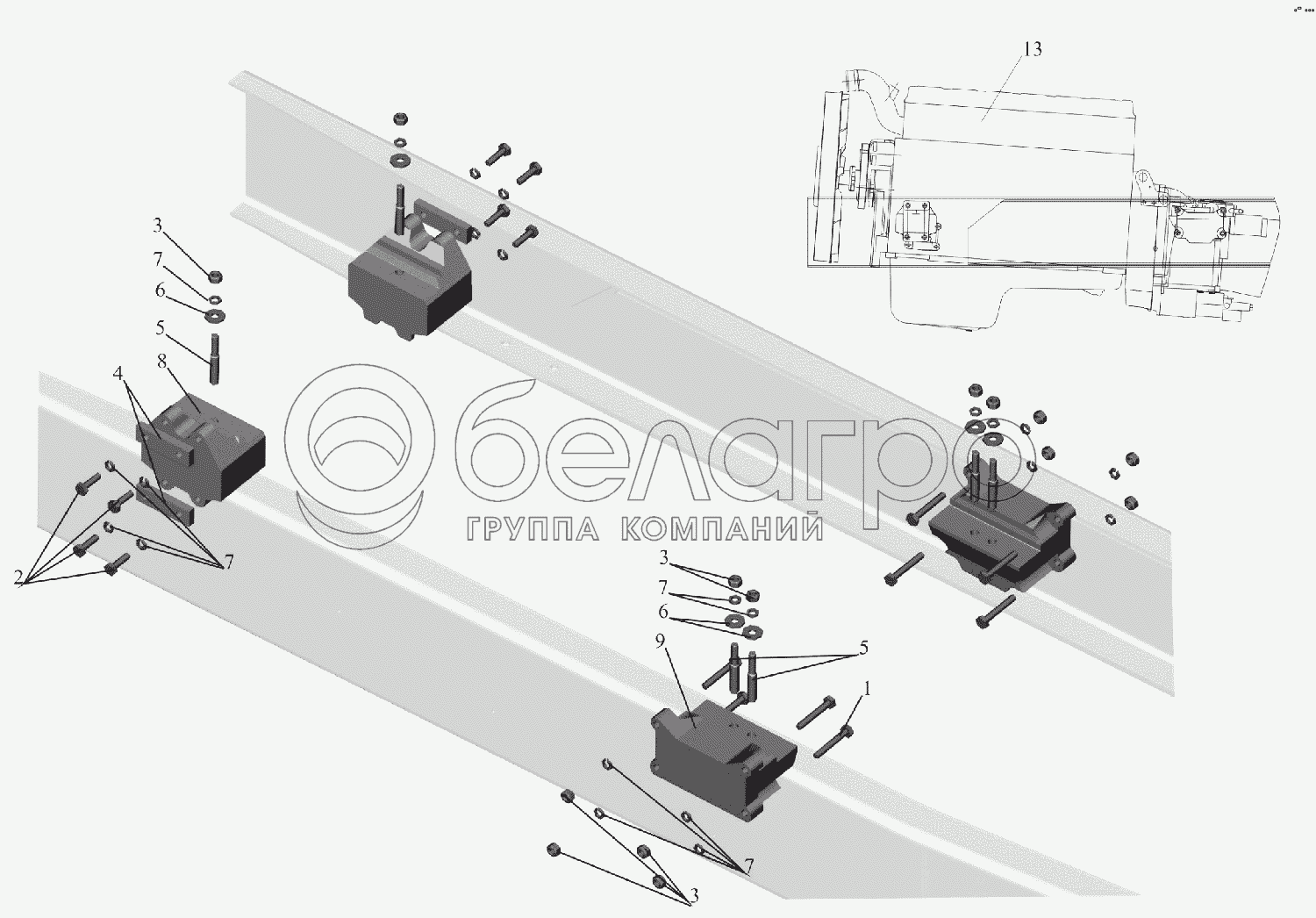 Каталог запасных частей к технике: МАЗ-6516V8-520 (6516V8-540). Крепление двигателя