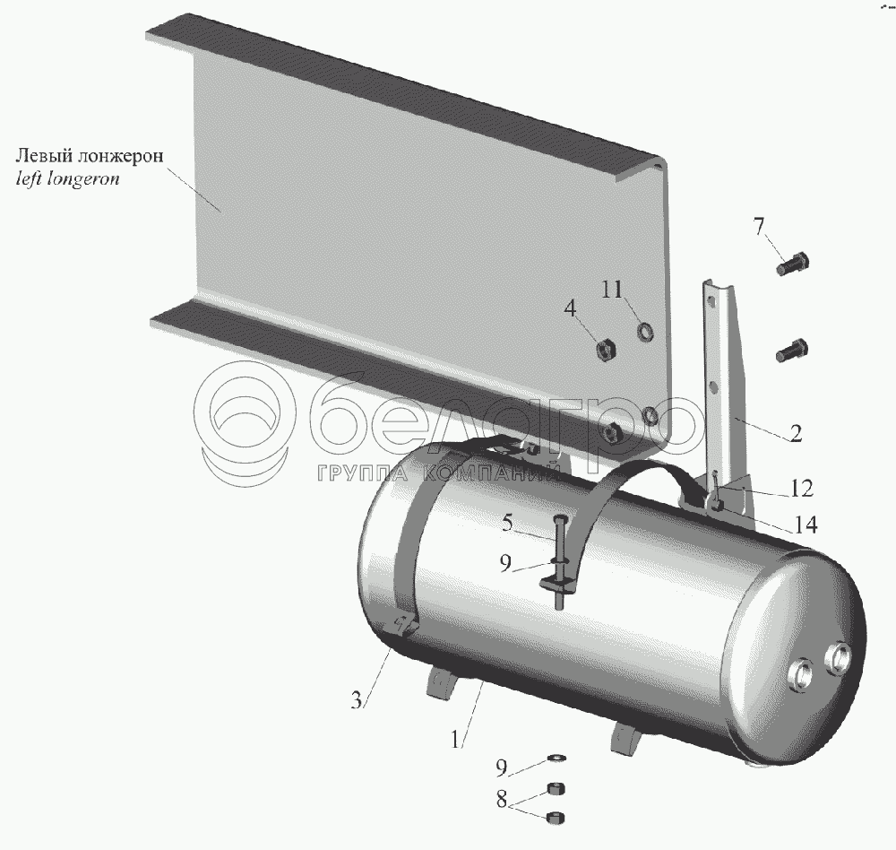 Каталог запасных частей к технике: МАЗ-6516V8-520 (6516V8-540). Крепление ресивера 650108-3513006