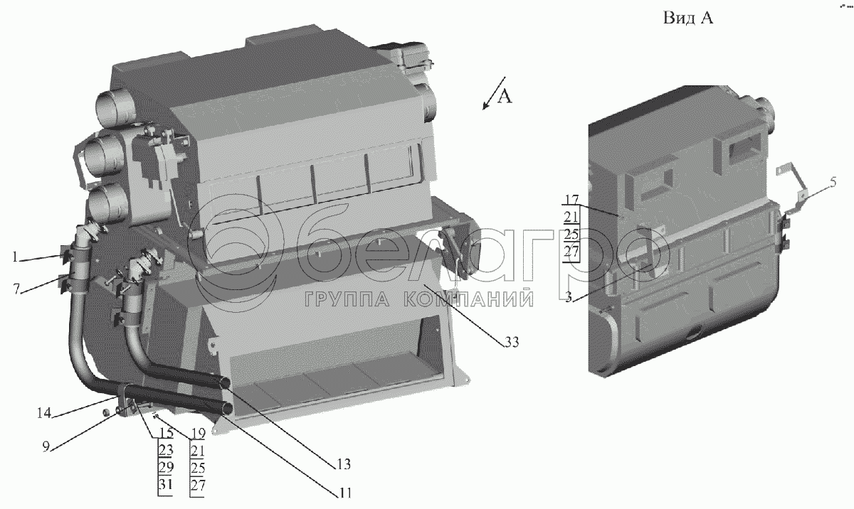 Каталог запасных частей к технике: МАЗ-6516V8-520 (6516V8-540). Отопитель 631019-8101010-010