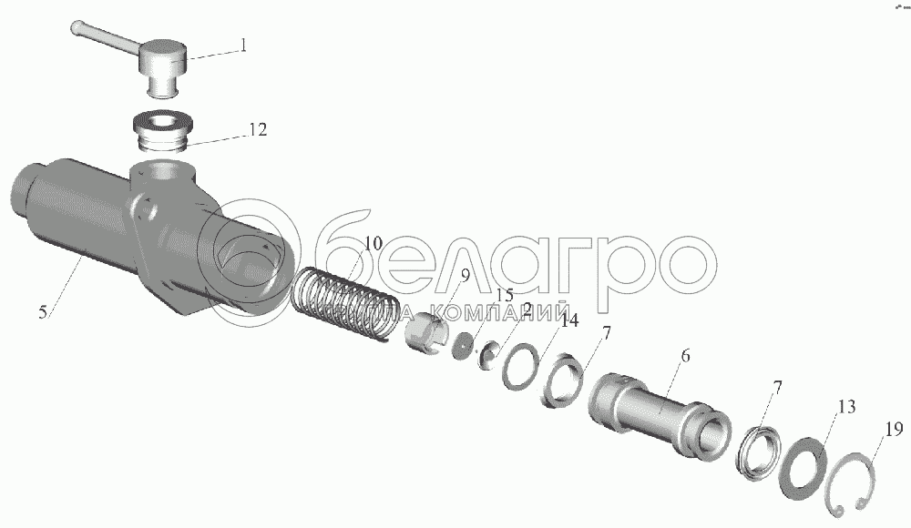 Каталог запасных частей к технике: МАЗ-6516V8-520 (6516V8-540). Цилиндр подпедальный 6430-1602510
