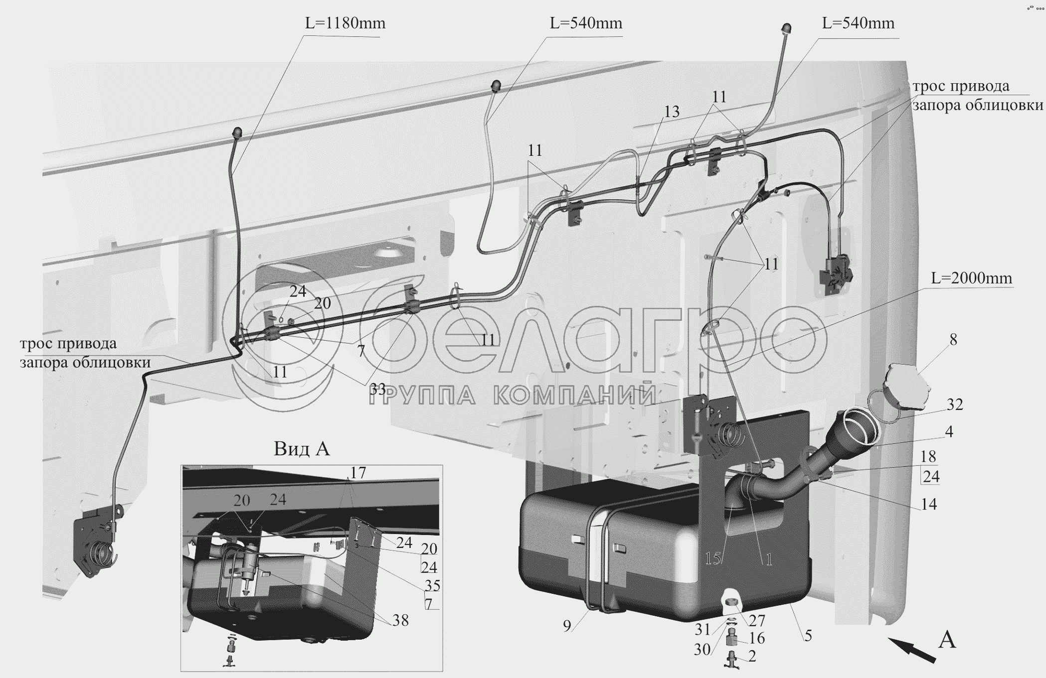 Каталог запасных частей к технике: МАЗ-6516V8-520 (6516V8-540). Установка омывателя 6430-5200008