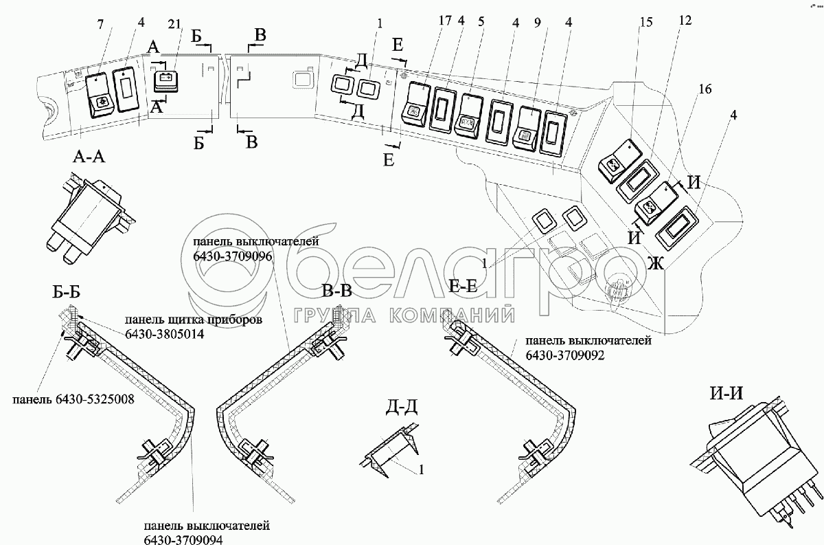 Каталог запасных частей к технике: МАЗ-6516V8-520 (6516V8-540). Установка выключателей 650105-3700018