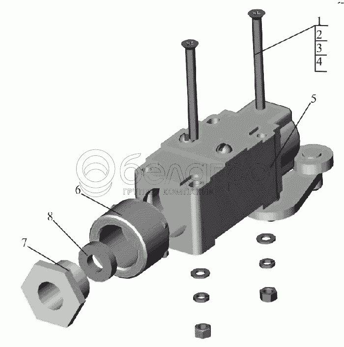 Каталог запасных частей к технике: МАЗ-6516V8-520 (6516V8-540). Установка выключателя 651608-8600024