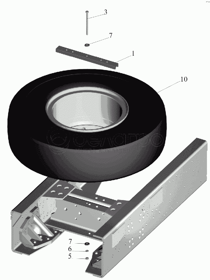 Каталог запасных частей к технике: МАЗ-6516V8-520 (6516V8-540). Установка запасного колеса