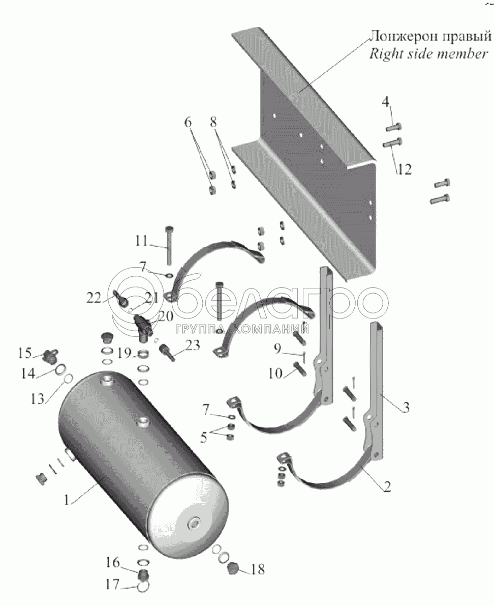 Каталог запасных частей к технике: МАЗ-651705. Крепление ресивера 54321-3513005 и присоединительной арматуры