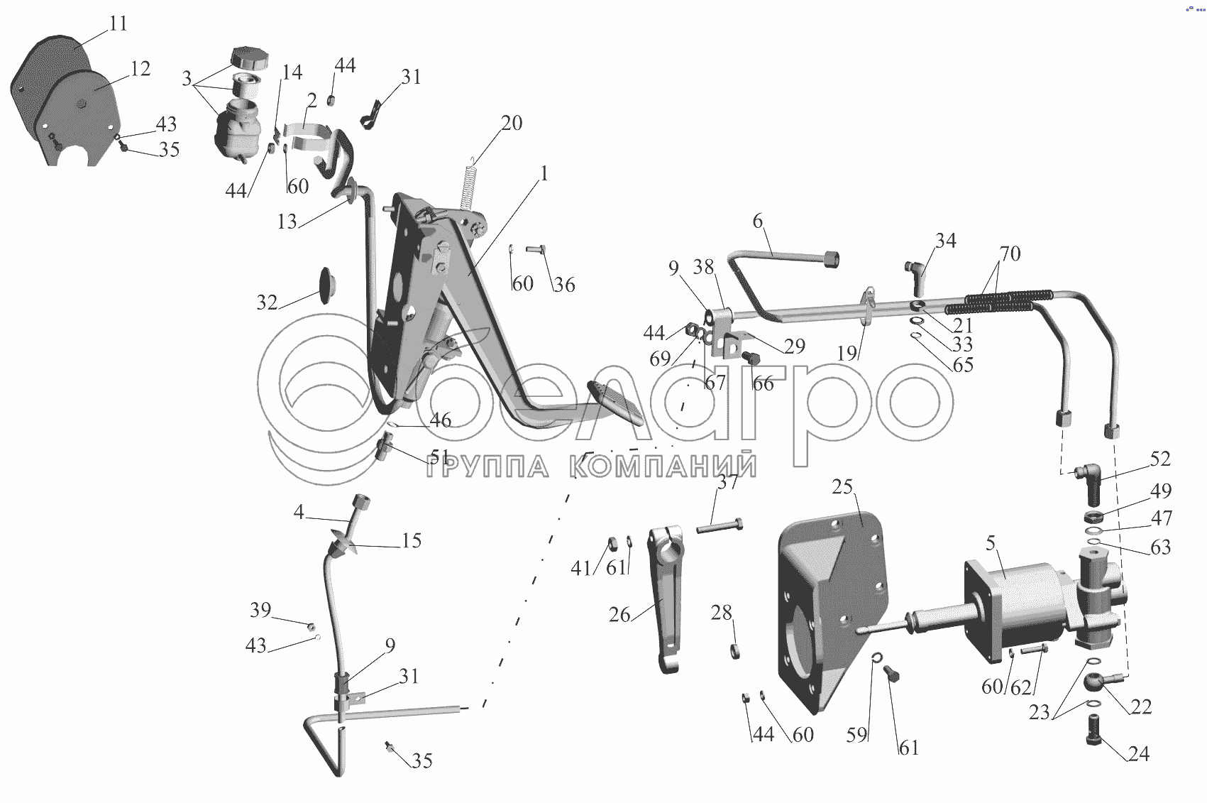 Каталог запасных частей к технике: МАЗ-651705. Механизм управления сцеплением 64229-1600005-033