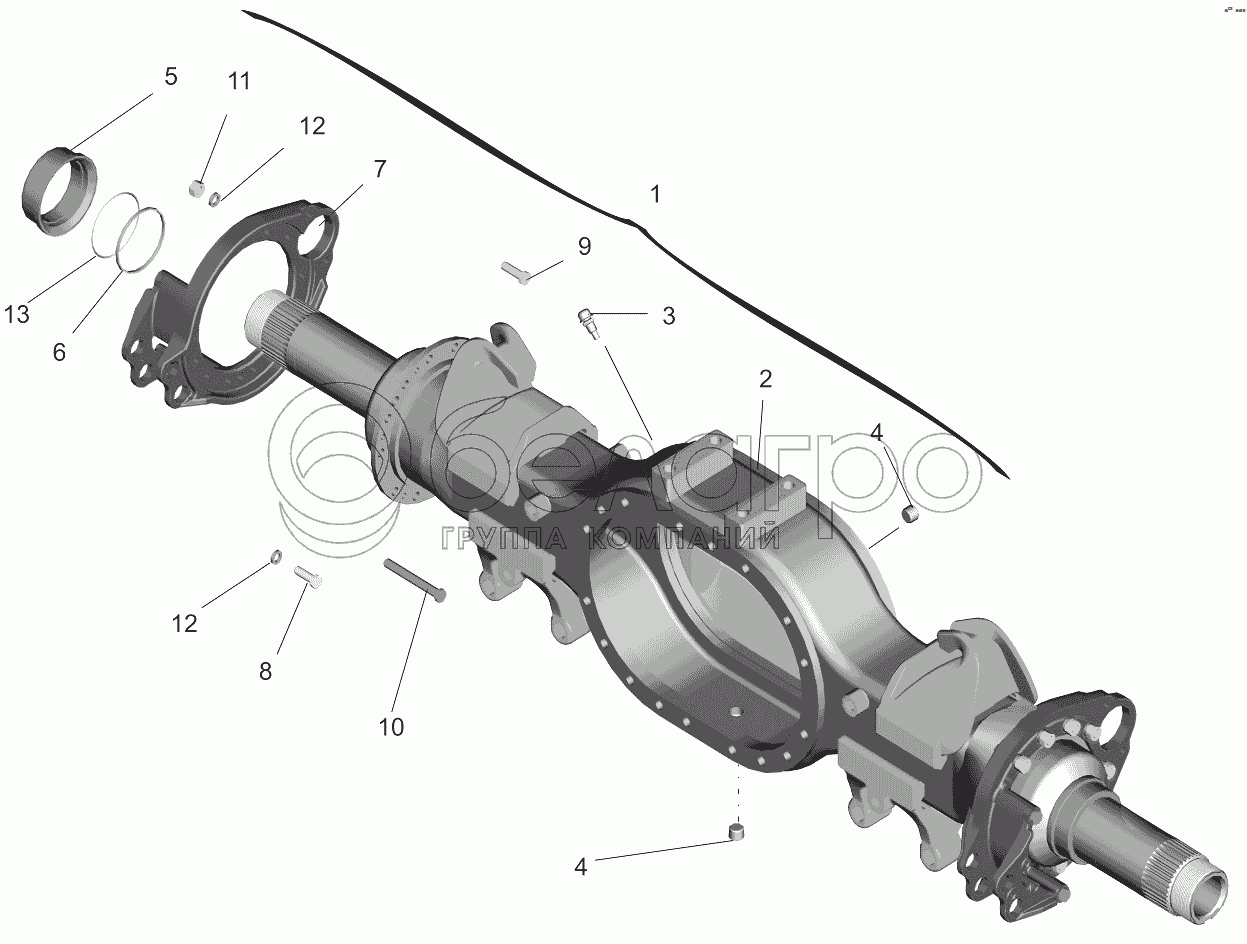 Каталог запасных частей к технике: МАЗ-651705. Мост задний. Картер моста 5516-2401010-030