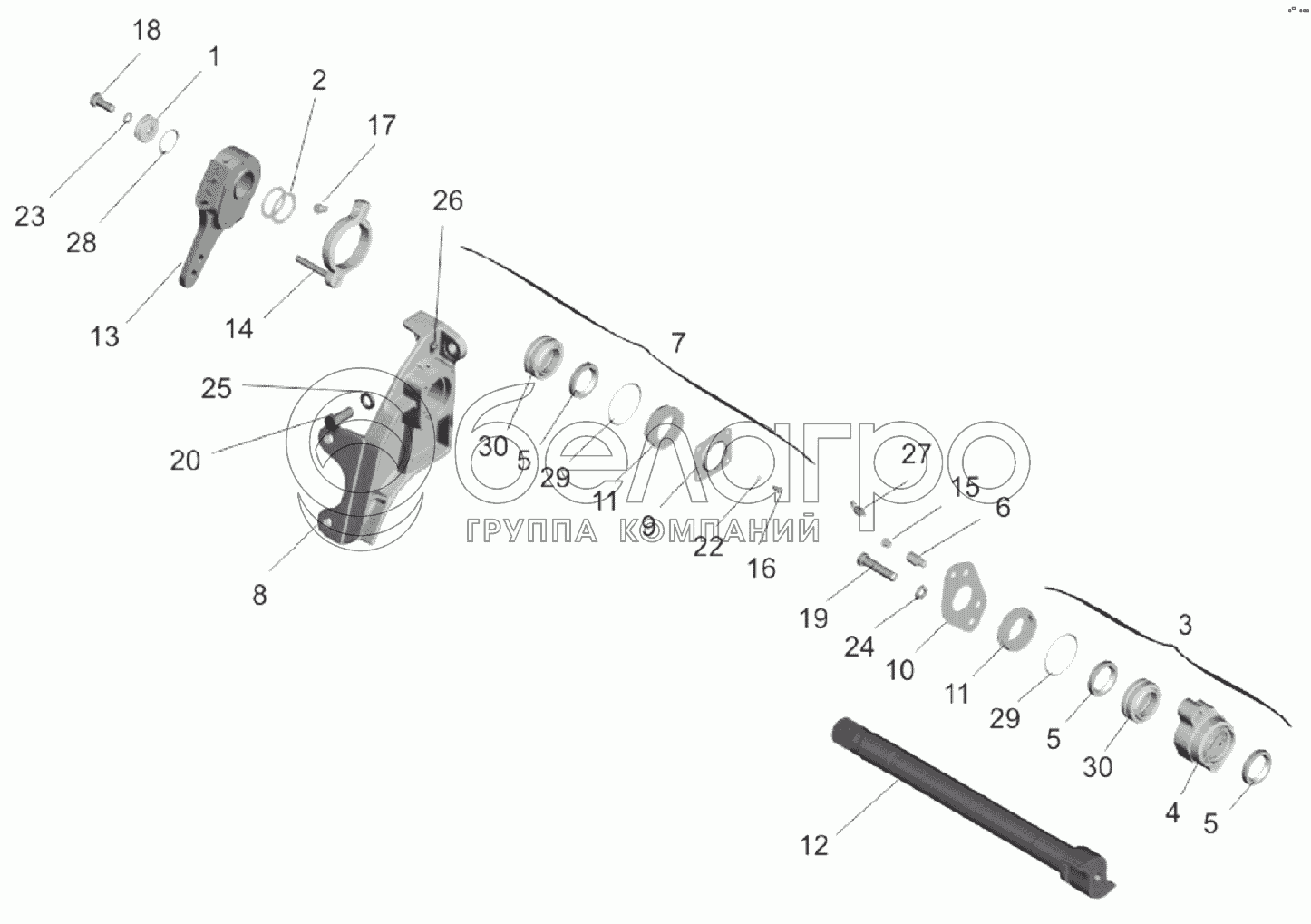 Каталог запасных частей к технике: МАЗ-651705. Привод тормозного механизма среднего моста