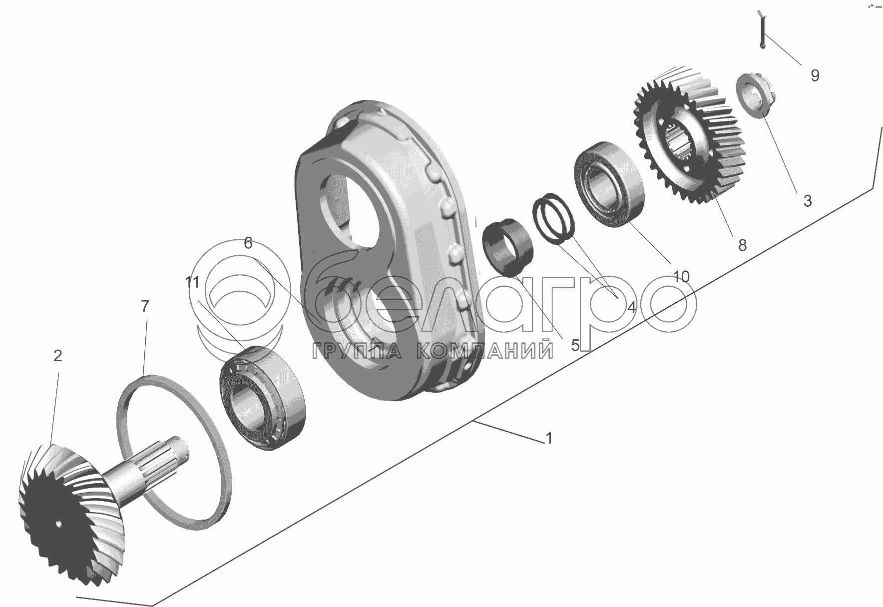 Каталог запасных частей к технике: МАЗ-651705. Редуктор среднего моста. Шестерня ведущая
