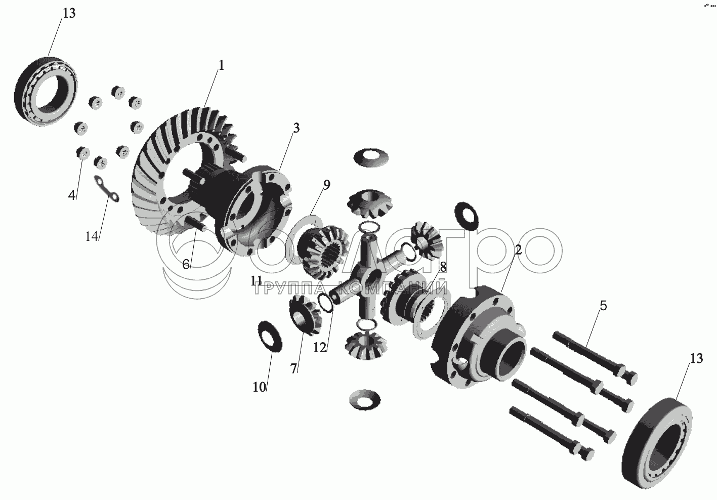 Каталог запасных частей к технике: МАЗ-651705. Редуктор заднего моста. Дифференциал