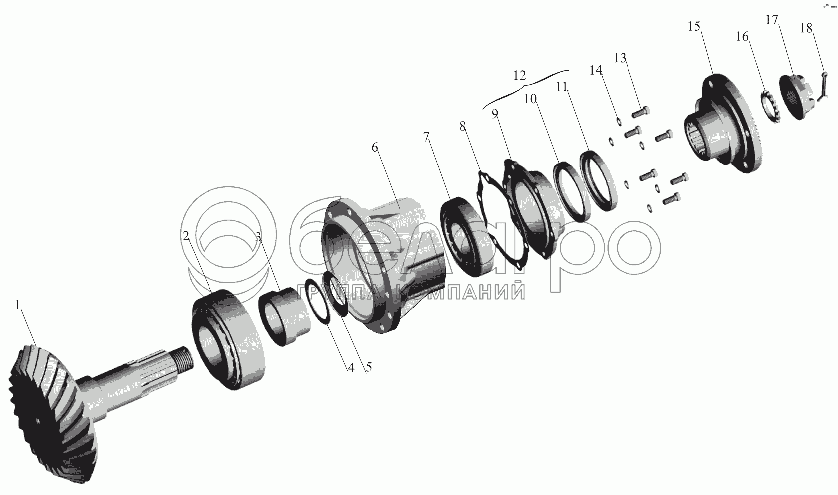 Каталог запасных частей к технике: МАЗ-651705. Редуктор заднего моста. Шестерня ведущая