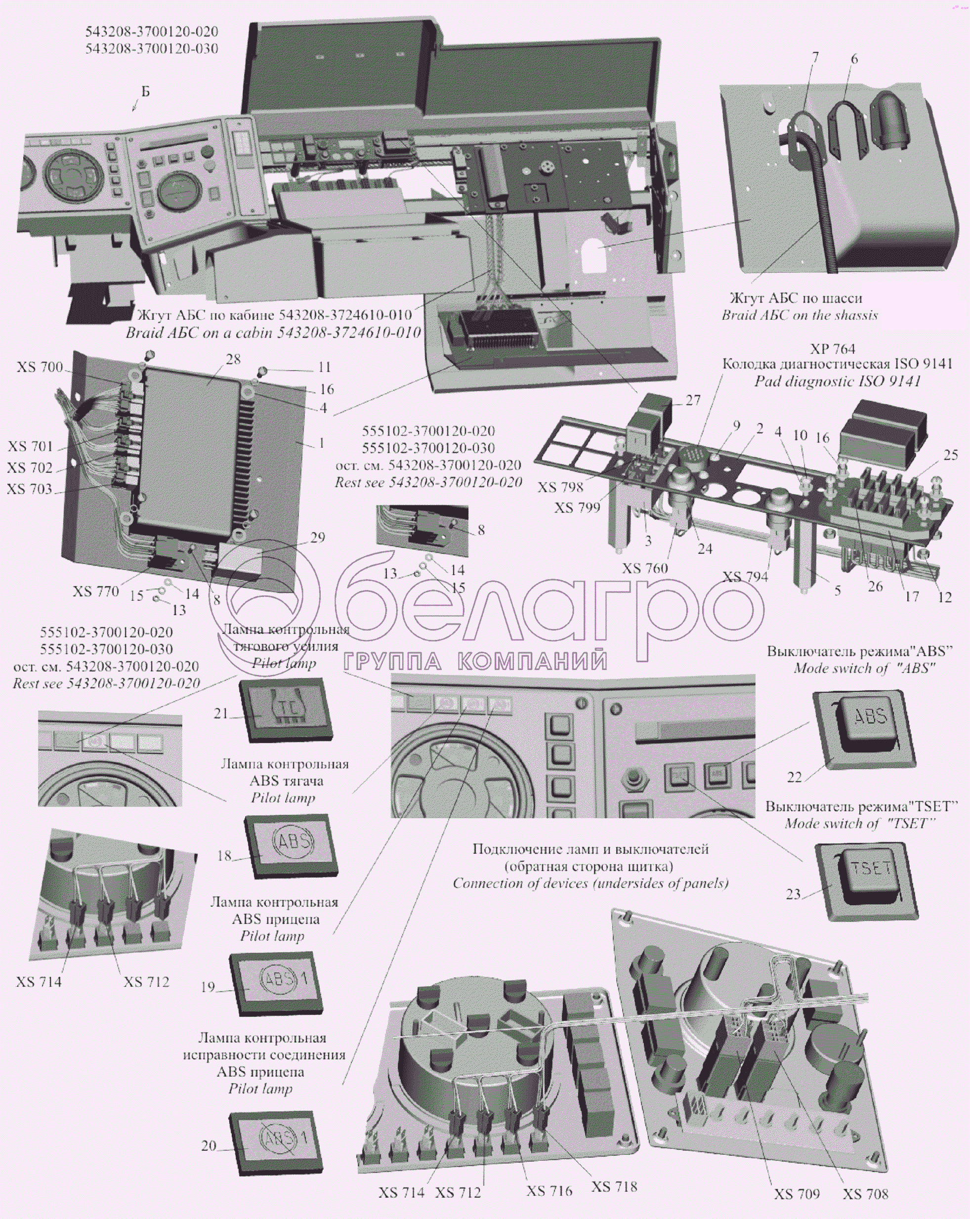 Каталог запасных частей к технике: МАЗ-651705. Установка АБС по кабине