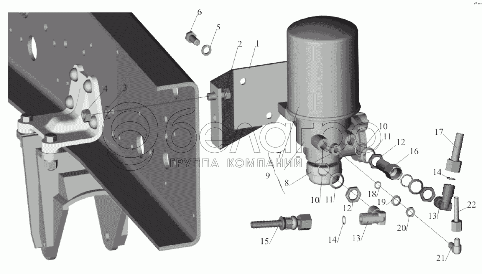 Каталог запасных частей к технике: МАЗ-651705. Установка осушителя воздуха 64255-3536004-010