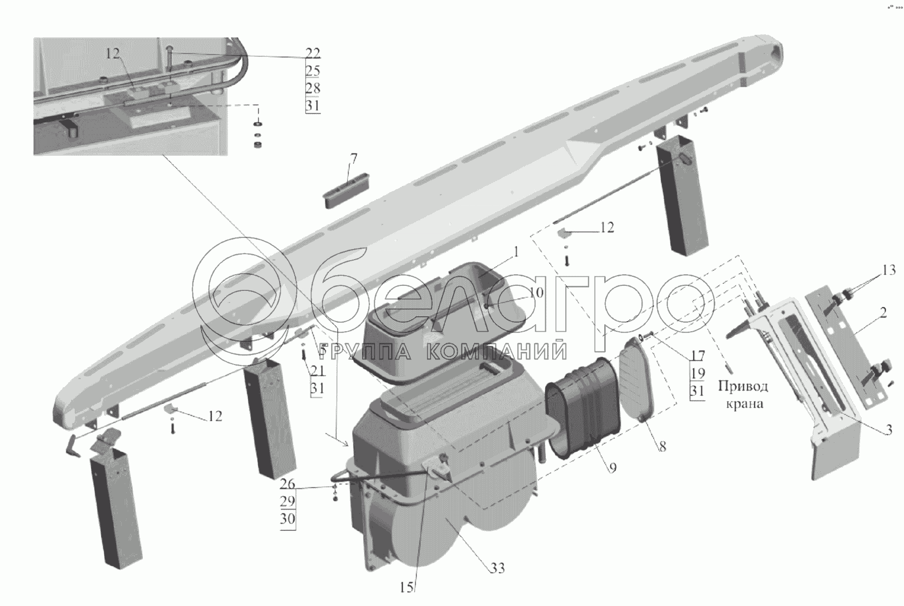 Каталог запасных частей к технике: МАЗ-651705. Установка отопителя 64221-8100001